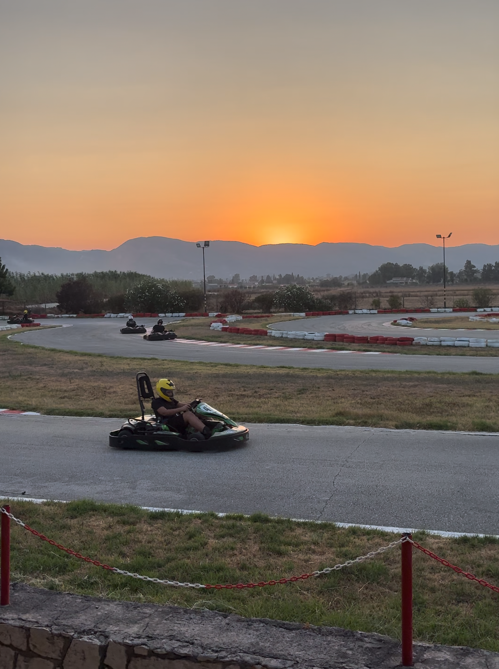 Ik heb zelf overdag gekart en het was top. De baan is niet enorm, maar juist compact genoeg om een goede ritme op te bouwen. Het is leuker dan je misschien denkt, vooral die haarspeldbochten zijn echt serieus sturen. De 300cc karts halen aardige snelheden, je merkt echt dat het geen kermis-karts zijn. Het personeel geeft van tevoren een korte uitleg en houdt de boel in de gaten vanaf de kant. Na je ritje krijg je een print-outje met je rondetijden, leuk als je met vrienden bent en wilt weten wie nou écht de snelste was. De sfeer is relaxed, niet te gehaast. Drankjes bij de snackbar zijn redelijk geprijsd. Als je in de buurt van Kalamaki of Laganas verblijft is dit echt een aanrader voor een afwisselende middag.